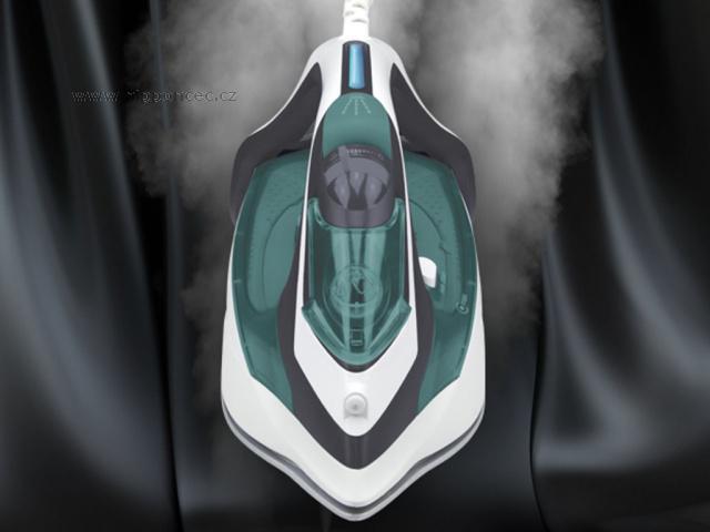 Keramická žehlící plocha, vertikální žehlení, samočistící funkce, výkon 2200 W.