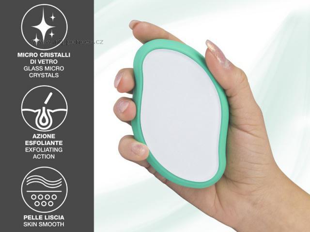 Peelingový kámen s exfoliačním a depilačním účinkem BEPER C301ABE200 ze skleněných mikrokrystalů je vhodný i pro citlivou pokožku. Pomáhá s nepříjemným zarůstáním chloupků. Díky exfoliačnímu působení mikrokrystalků činí pokožku hladší a jemnější, odstraňuje odumřelé buňky, zarůstající chloupky a zároveň pomáhá snadno a bezbolestně odstranit chloupky. Pro účinnější depilační účinek používejte přibližně každé 2 týdny na chloupky o velikosti alespoň 2-3 mm.