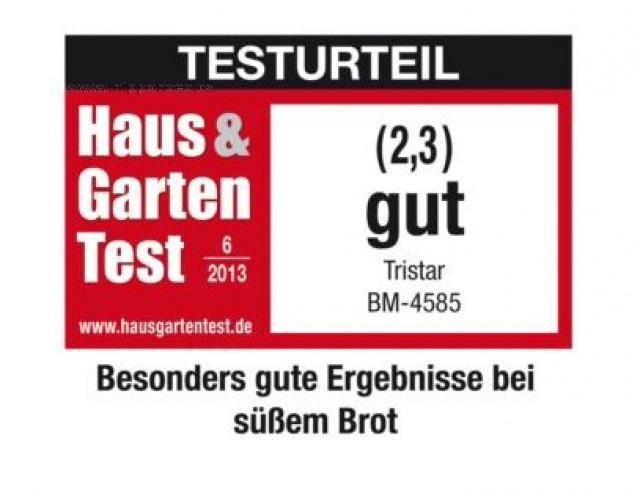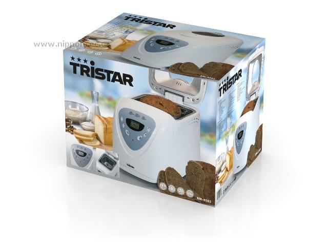Pekárna Tristar má 12 digitálních programů včetně specielního rychlého programu, časovač (můžete vstávat s vůní právě upečeného čerstvého chleba. Je vybavena velkým LCD displejem s vysokým rozlišením, průzorem pro okamžitou kontrolu procesu pečení. Pekárna Tristar má výjimatelnou formu na chléb s kvalitní nepřipékavou úpravou na bázi teflonu pro snadné čistění a jedním hnětacím hákem. Formu i hák lze mýt v myčce nádobí - snadná údržba.