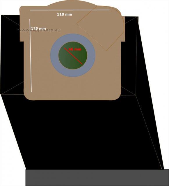 permanentní vysypávací sáček (textilní do vysavačů Rozměry sáčku: délka 235 mm x šíře 185 mm Rozměry kartonu: výška 125 mm x šíře 118 mm x průměr sacího otvoru 46 mm - Tento typ sáčku lze nahradit sáčkem jednorázovým, z netkané textilie, např. ETA17 MAX nebo 6103