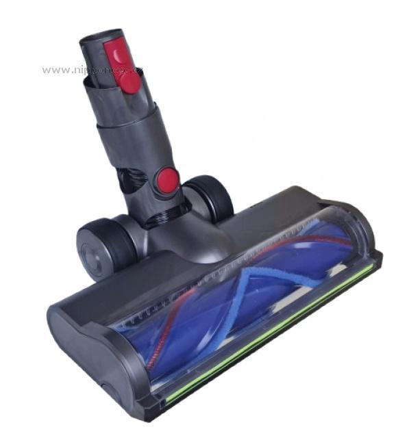 Podlahová hubice pro vysavače Dyson V12, V12 Slim se zeleným LED světlem Neoriginální elektrická podlahová hubice s tichým a výkonným motorem a rotačním kartáčem je kompatibilní pro akumulátorové vysavače serie DYSON 12, DYSON V12 Slim, V12 Submarine... Elektrická turbohubice je designována pro efektivní čistění na všech površích - využijete ji pro tvrdé podlahy (lamino, PVC, dlaždičky, plovoucí podlahy, parkety), stejně tak pro koberce s nízkým a středním vlasem - spirálová struktura kartáče se dvěma řadami nylonových štětin je také odolná proti namotávání. Vynikající manévrovatelnost a flexibilita je dána 90° sklopným kloubem pro komfortní vysávání pod nábytkem bez nutnosti ohýbání, 180° otočnou hlavou usnadňující přístup i do hůře přístupných míst a dvěma velkými pogumovanými kolečky, které nepoškodí ani citlivé povrchy. Ze všech podlah odstraní dobře prach i špínu. LED zelené světlo odhalí na podlaze i drobné částice prachu a nečistot, takže vám žádná neunikne.