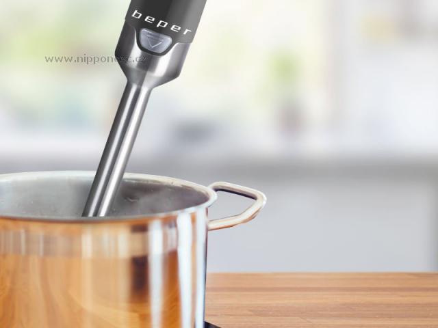 Ponorný tyčový mixér BEPER BP652 s výkonem 800 W je ideální pro přípravu polévek, ovocného a zeleninového pyré či kaše. Tyčový mixér díky plynulé regulaci rychlosti + TURBO režimu perfektně rozmixuje vše do posledního kousku. Po mixování a očištění, můžete mixér zavěsit pomocí praktického poutka. Mixér disponuje pulsní funkcí.