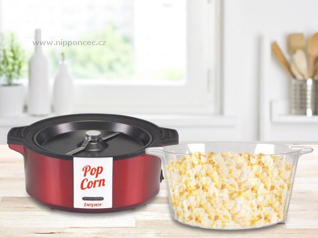 Popcornovač BEPER P101CUD050 o průměru 22 cm s nepřilnavým ohřívacím tácem je ideální pro přípravu až 75 gramů popcornu najednou a to přibližně za 5 minut. Průhledné víko se promění ve velkou mísu pro pohodlné servírování popcornu celé rodině. Automaticky se otáčející nerezové míchadlo rovnoměrně rozděluje kukuřičná zrna a olej (nebo máslo) během přípravy. Skvěle se hodí také pro přípravu kettle cornu nebo pražených oříšků.