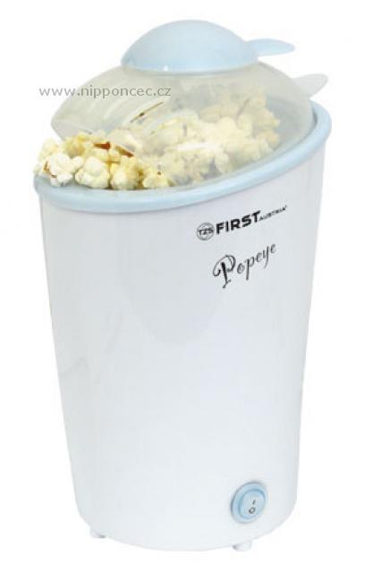 Malý popcornovač First Austria FA 5108-1 modrobílý. Nabízí snadné ovládání, i plnění. Velmi rychlá příprava oblíbené pochoutky dětí i dospělých například na dětskou párty, nebo ke sledování filmu. Vybaveno praktickým AirFlow systémem pro přípravu popkornu bez přidání tuku či oleje. Odměrka výrobku slouží současně jako víčko. Disponuje svým příkonem, který činí 900W. Je opatřen velkým zásobníkem, který je na 3 porce. Nechybí protiskluzové nožky ve spodní části zabrání pádu popkornovače z kuchyňské desky, nebo stolu.