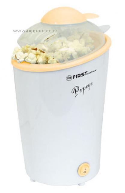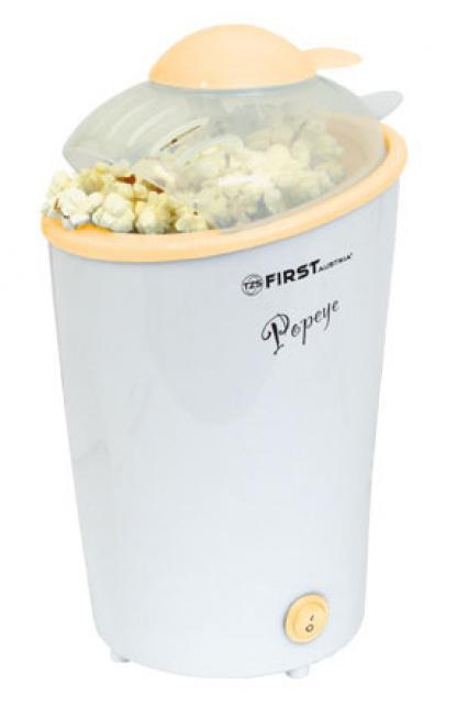 Malý popcornovač First Austria FA 5108-1. Nabízí snadné ovládání, i plnění. Velmi rychlá příprava oblíbené pochoutky dětí i dospělých například na dětskou párty, nebo ke sledování filmu. Vybaveno praktickým AirFlow systémem pro přípravu popkornu bez přidání tuku či oleje. Odměrka výrobku slouží současně jako víčko. Disponuje svým příkonem, který činí 900W. Je opatřen velkým zásobníkem, který je na 3 porce. Nechybí protiskluzové nožky ve spodní části zabrání pádu popkornovače z kuchyňské desky, nebo stolu.