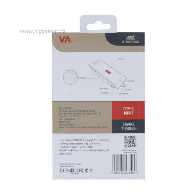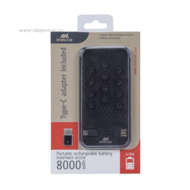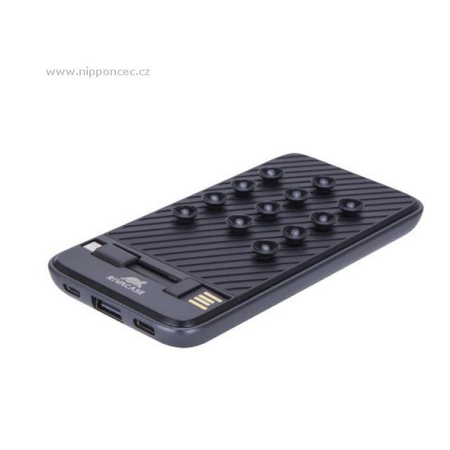 Tenká a lehká Powerbanka RIVAPOWER VA2208 s kapacitou 8000 mAh je perfektní při cestování, lze jí dobít mobilní zařízení v jakékoliv situaci. Disponuje 4 LED indikátory pro kontrolu stavu zbývající energie baterie. Lze ji nabít a vybít více než 500x. Bezpečnostní ochrana proti přebití, podbití, přetížení a zkratu. Můžete s ní nabíjet běžné modely smartphonů, tabletů a další zařízení. Skvělou vychytávkou jsou přísavky, které umožňují přilepit baterii k telefonu a držet je pohromadě při nabíjení.