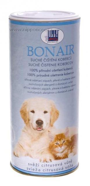 Bojíte se vaše koberce vyčistit mokrou cestou kvůli jeho možnému poškození? Zároveň jste milovníkem zvířat? Pak nabízíme řešení v podobě suchého šamponu Bonair od značky Jolly, který tento problém vyřeší. Bonair účinně odstraňuje nežádoucí zvířecí pachy a zároveň odstraní škodlivé látky z koberců (například formaldehyd). Je vhodný pro koberce, matrace a čalounění, jak v domácnosti, tak ve školních i zdravotních zařízeních, kancelářích i hotelích. Vyčistíte s ním plochu 70 - 100 m2 a je vyroben ze 100% přírodních látek.