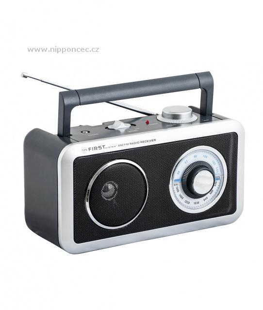 Přenosné rádio First Austria FA-1905-BA lze napájet z elektrické sítě nebo pomocí 3 x UM1 baterií a tak ho můžete vzít s sebou kam potřebujete např. na pláž, chatu či staveniště. Rádio se snadno ovládá díky vestavěnému analogovému tuneru pro AM/FM a velkému číselníku stanic. Lepší příjem rádia je zajištěn díky integrované teleskopické anténě.