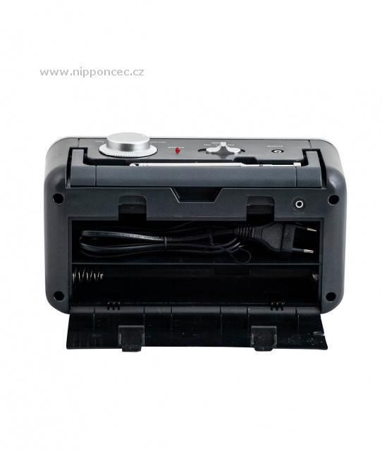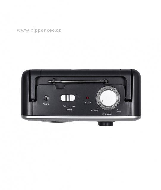 Tradiční přenosné rádio, integrovaná teleskopická anténa, retro design.