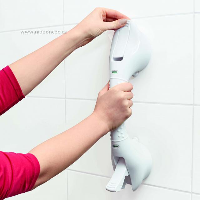 Kvalitní a spolehlivé mobilní madlo Vitility 70110160 o délce 40 cm bylo navrženo tak, aby poskytlo podporu v přirozeném pohybu, například při vcházení a vycházení ze sprchy nebo vany. Na madlo nelze přenést celou váhu těla, je navrženo pro max. zatížení 60 kg. Lze jej připevnit nebo odstranit během několika vteřin. Pro upevnění není nutné žádné vrtání otvorů nebo šroubování, dvě silné přísavky se pevně přitisknou na neporézní, čistý, pevný povrch a vakuové úchyty zatlačením dolů madlo dokonale a bezpečně upevní. Vestavěná vizuální indikace u přísavek signalizuje správné upevnění.