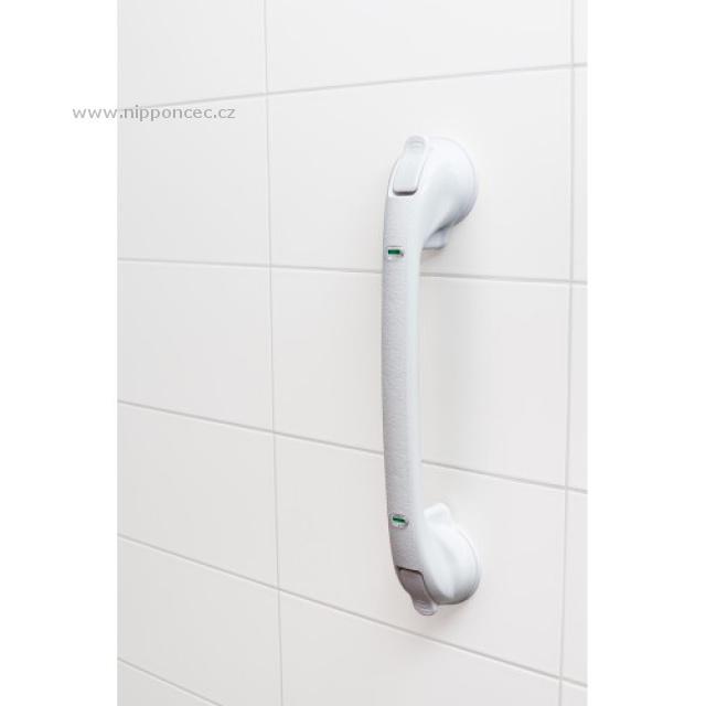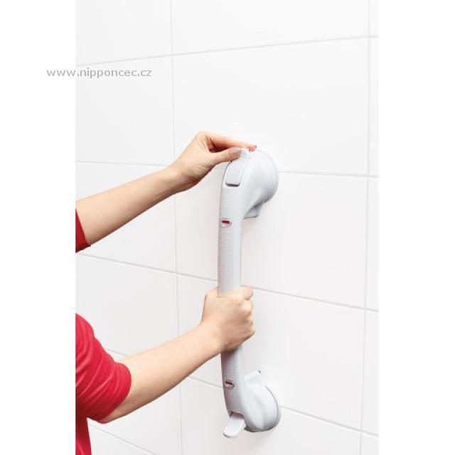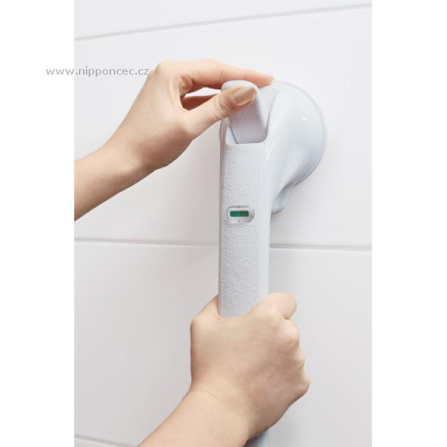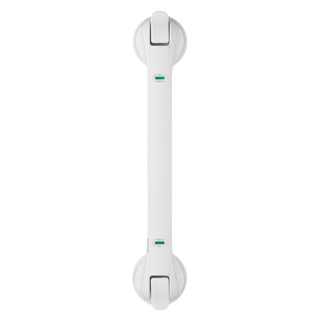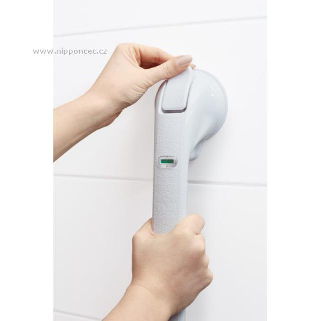 Přísavkové mobilní madlo Vitility 70110520 se stane vaším praktickým pomocníkem, zajistí váš stabilnější pohyb v koupelně či na toaletě. Je navrženo speciálně tak, aby poskytlo podporu v přirozeném pohybu. Je vyrobeno z kvalitního plastu a velmi snadno se upevňuje na zeď. Lze ho připevnit nebo odstranit během několika vteřin. Dvě silné přísavky se přitisknou na neporézní, pevný povrch, zatímco vakuové úchyty zatlačením dolů madlo bezpečně upevní. Na madlo nelze přenést celou váhu těla, jeho maximální zatížení je 60 kg. Disponuje indikátorem bezpečného připevnění: zelený indikátor značí, že madlo je přichyceno správně, červený nebo červeno-zelený indikátor značí, že je potřeba připevnění madla zopakovat.