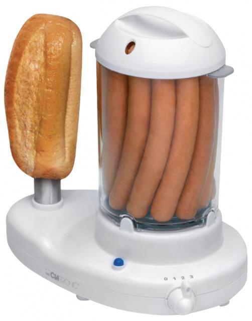 Hotdogovač 2 v jednom - pro párky v rohlíku za pár minut , formou, kterou děti jistě ocení! Přístroj má jeden ohřevný trn vertikální, transparentní zásobník s kapacitou 1-6 párků, a nástavec pro 1-6 vajec. Termostat je nastavitelný na 3 stupně - se světelnou kontrolkou. Víčko i nádobku lze pro snadnou údržbu sejmout z přístroje.