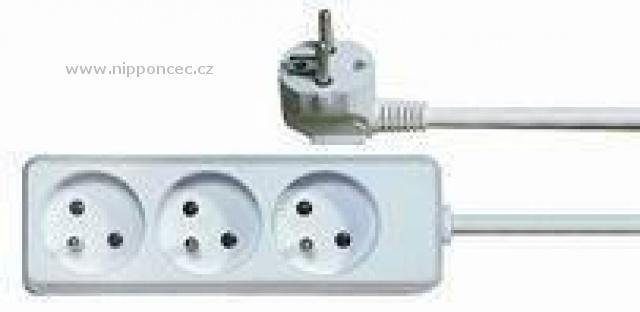 • Bílý prodlužovací přívod, 3 zásuvka s délkou 1,5 m a průřezem vodiče 1 mm2.