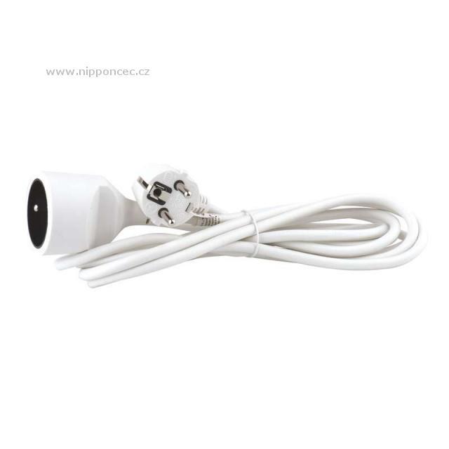 • Bílý prodlužovací přívod s jednou zásuvkou - spojka, délkou 3 m a průřezem vodiče 1 mm2.