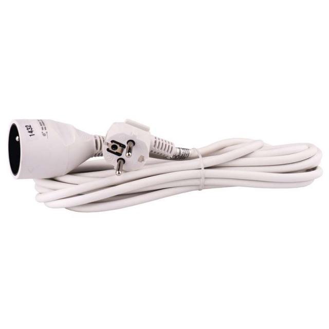 • Bílý prodlužovací přívod s jednou zásuvkou - spojka, délkou 5 m a průřezem vodiče 1 mm2.