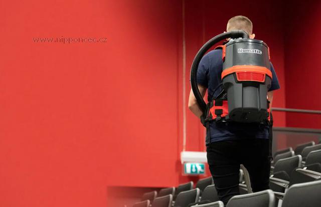Naprostou svobodu při vysávání vám poskytne bezdrátový vysavač na záda Numatic RSB150NX. Je ideální všude tam, kde členitý prostor komplikuje vysávání např. v kině, v dopravních prostředcích, na schodech, v kancelářích apod. Vysokokapacitní lithium-iontová baterie NX300 umožňuje až 80 minut provozu na jedno nabití (možnost dokoupení rezervní baterie pro nepřetržitý úklid). Výkonný motor zajišťuje velmi dobrý sací výkon. Ovládání vysavače s indikátorem stavu baterie máte vždy po ruce. Na bederním pásu jsou poutka pro uložení příslušenství jako např. štěrbinové hubice nebo hubice s kartáčem. Ergonomicky tvarovaná záda s posuvným zádovým systémem se dobře přizpůsobí každé postavě.