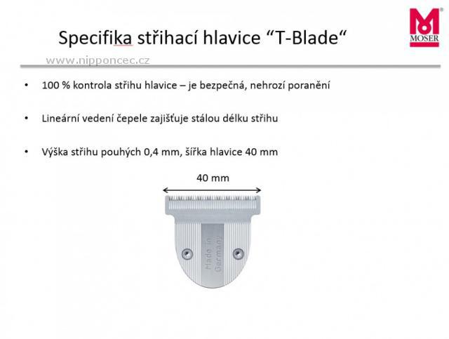 • profesionální střihací hlavice T-Blade z ušlechtilé oceli ve tvaru písmene "T"