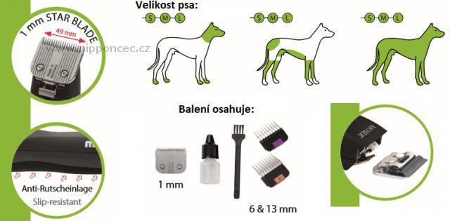 Profesionální střihací strojek na zvířecí srst je velmi tichý a s vyváženým ergonomickým tvarem. Vyznačuje se výjimečně silným 50W motorem bez vibrací. Jedná se tedy o nejvýkonnější a nejtišší strojek od firmy Moser. Pohodlné je snímání střihací hlavice i délka přívodní šňůry - 3 metry. Součástí balení je olejnička se speciálním olejem, čisticí kartáček. Hlavice má výši střihu 1mm.