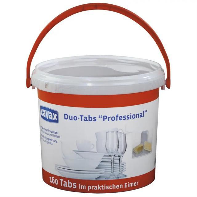 Profesionální tablety do myčky, bez rozbalování, Xavax 111735, 160 ks. Tablety jsou baleny v obalu, který je rozpustný ve vodě. Jednoduše vyjmete tabletu z kyblíku a vložíte do myčky na nádobí. Jsou ideální pro připálené a velmi mastné nádobí. Bez obsahu fosfátů.