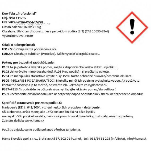 • P101 Je-li nutná lékařská pomoc, mějte po ruce obal nebo štítek výrobku.