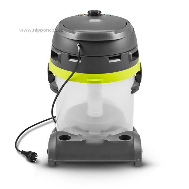 Tento kvalitní průmyslový vysavač PROFI 7E od polského výrobce PROFI Europe je určený pro vysávání velkých ploch v budovách s tvrdými podlahami nebo kobercovými krytinami, jako jsou školy, hotely, úřady, kanceláře apod. Tento vysavač je nepostradatelným pomocníkem pro profesionální úklidové firmy, protože díky jednoturbínovému motoru By-Pass dokáže nepřetržitě vysávat nečistoty opravdu dlouho. Díky bohaté výbavě model vysavače PROFI 7E hravě zvládne vysávání suchých povrchů (do syntetického sáčku) a mokrých nečistot (do plastové sběrné nádoby) na profesionální úrovni. Pro ještě účinnější mokré vysávání lze dokoupit vodní filtr, který však není součásti balení. Objem sběrné prachové nádoby je až 15 l, což znamená nízké provozní náklady. Vysavač je vybavený HEPA filtrem, který zaručuje účinnou filtraci. Model PROFI 7E je pro svou lepší stabilitu upevněn na vozíku s otvory na umístění nástavců. Díky čtyř kolečkům s gumovým dezénem je tento vysavač šetrný k podlahám. Na rozdíl od základní verze (modelu PROFI 7) tento vysavač má zásuvku na připojení elektro nářadí s příkonem do 2200 W.