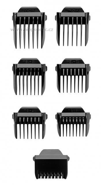 Výbava zastřihovače obsahuje 6 snadno vyměnitelných hřebenových nástavců pro různou délku střihu od 4 do 30 mm. Do výbavy tohoto zastřihovače patří také speciální nástavec na prostříhávání, který dodá vašemu účesu lehkost, aniž by zkrátil jejich délku. Pro dosažení perfektně zastřižených vousů s dokonalými liniemi o délce od 0,8 do 2,8 mm použijte zastřihovač bez hřebenového nástavce.