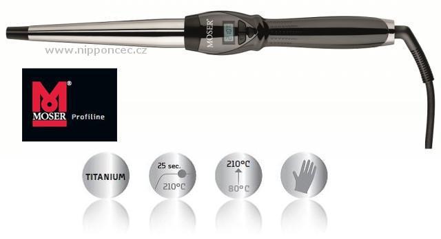 Kónická digitální kulma s regulací teploty, velmi rychlým ohřevem a snadným použitím je výborná pro mnoho kreativní úprav vlasů. Disponuje průměrem 13 - 25 mm. Titanový povrch je skvělý pro všechny druhy vlasů. Pyšní se LCD displejem, na kterém můžete kontrolovat nastavenou teplotu. Pak se vám nikdy nemůže stát, že byste nastavili příliš vysokou teplotu a poškodili si tím vlasy. Špička je izolovaná, úchop a manipulace je v kombinaci s příjemným a měkkým povrchem držadla velmi snadná.