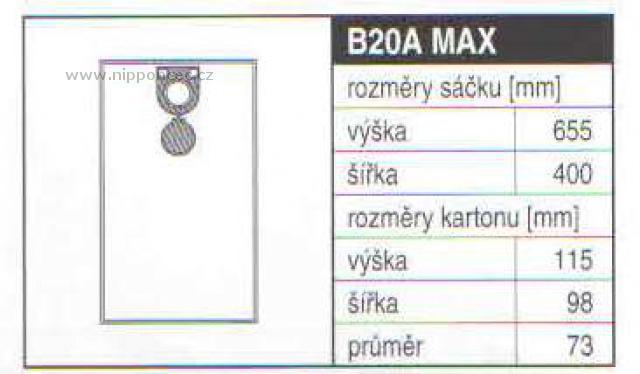 Sáčky do vysavače Jolly B20A MAX 12ks Průmyslové sáčky do vysavačů jsou vhodné pro typy: BOSCH GAS 25, GAS 25 L SFC, EIBENSTOCK DSS 25 A, DSS 25 M,DSS 35 MiP, SS 1200,HITACHI RNT 1225, MAFELL S 25,METABO ASA 1202, ASA 2025, ASR 25, ASR 25 L SC,METABO ASR 35,ASR 35 L AutoClean, ASR 35 M AutoClean, ASR 2025,MILWAUKEE AS 300,STARMIX IS ARD 1225,IS ARD 1425 Compact.