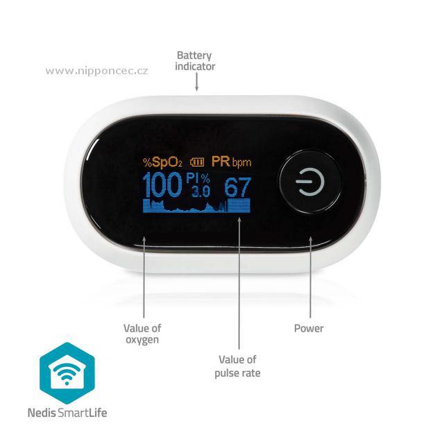 Chytrý pulzní oxymetr Nedis SmartLife BTHOX10WT měří kyslík v krvi (SpO2), tepovou frekvenci (PR) a perfuzní index (PI). Jeho obsluha je velmi jednoduchá - vložíte do něj prst a stisknutím jednoho tlačítka změříte všechny tři výše uvedené parametry. Samotné měření trvá 8 sekund a zjištěné hodnoty se zobrazí na OLED displeji. Přístroj vás upozorní zvukovým alarmem na nízkou hladinu kyslíku v krvi i na příliš nízkou nebo naopak vysokou tepovou frekvenci. Je napájen 2 bateriemi AAA, které nejsou součástí balení. Pomocí Bluetooth oxymetr snadno připojíte k aplikaci Nedis SmartLife, do níž lze automaticky ukládat zjištěná data. Díky tomu můžete naměřené hodnoty sledovat v průběhu času, případně je porovnat s výsledky ostatních členů vaší rodiny.