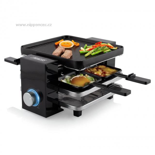 Raclette gril Princess Piano Black se skvěle hodí na posezení s přáteli nebo rodinou. Horní patro se skládá z desky z litého hliníku, kde můžete grilovat ryby, maso nebo zeleninu. Prostřední patro je určeno pro raclette pánvičky např. pro zapékání sýra apod. Spodní část grilu slouží pro bezpečné odložení horkých pánviček. Vzhledem k povrchové úpravě grilovací desky je možné připravovat potraviny takřka bez tuku, což je ideální pro zdravou přípravu téměř všech druhů potravin.