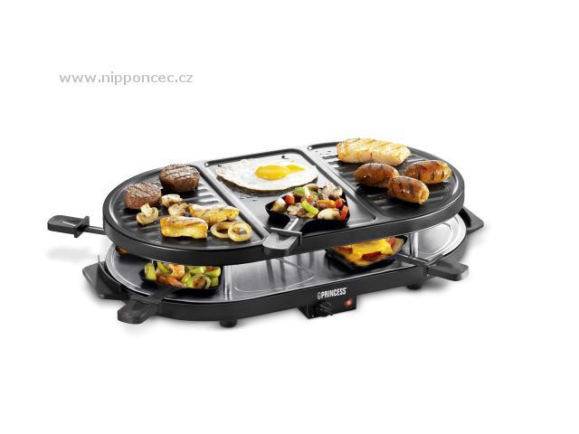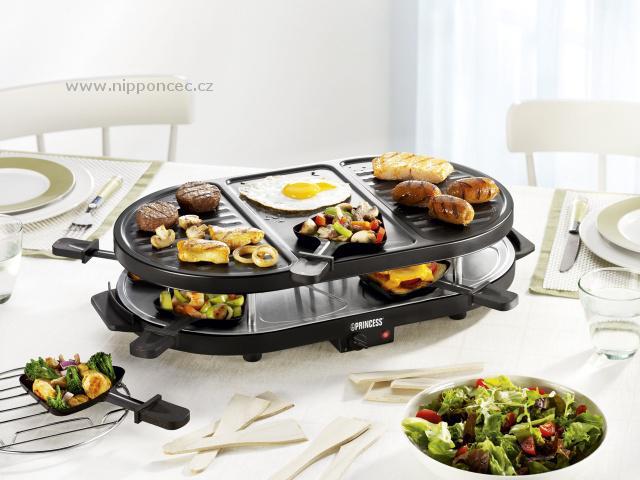 Raclette gril Princess je vybaven plynule regulovatelným termostatem a světelnou kontrolkou provozu. Součástí balení výrobku je 8 raclette pánviček a 8 kuchyňských špachtlí. Gril využijete stejně dobře jak v letním období na terase, tak vzhledem k jeho rozměrům, v zimních měsících na jídelním stole.