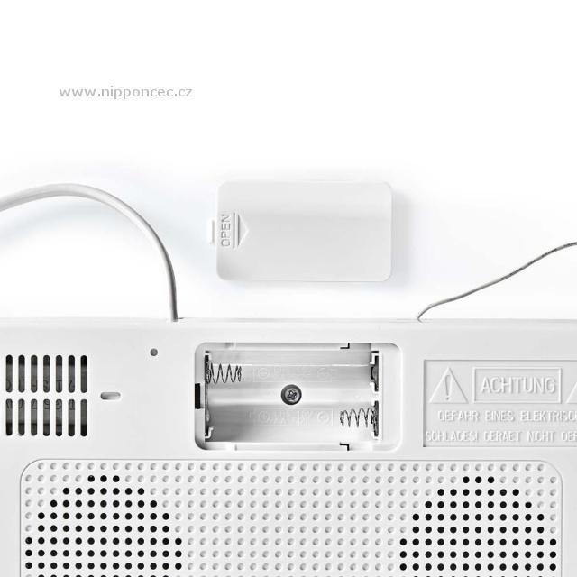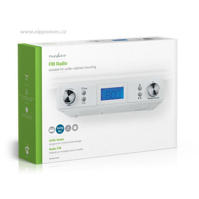 Trávíte hodně času v kuchyni a rádi byste si tyto chvíle zpříjemnili oblíbenou hudbou? Ale klasické rádio by vám zabíralo hodně místa na pracovní ploše? Máme pro vás ideální řešení! Díky kuchyňskému FM rádiu Nedis RDFM4010WT můžete poslouchat své oblíbené stanice během vaření nebo mytí nádobí, aniž byste přišli o drahocennou plochu na pracovní lince. Pomocí přiložených šroubů se rádio jednoduše namontuje pod skříňku nebo poličku kuchyňského nábytku. V případě potřeby ho lze rychle sundat a díky sklopné nožičce používat jako přenosné samostatně stojící zařízení. Rádio má LCD displej s modrým podsvícením a díky PLL digitálnímu ladění můžete poslouchat až 20 přednastavených FM stanic v rozsahu 87.5 - 108 MHz. Toto kuchyňské rádio od společnosti Nedis® má funkce budíku (vzbudí vás bzučákem nebo rádiem) a časovače s odpočítáváním (rádio lze použit jako kuchyňskou minutku). Na noc (mezi 23:00 a 5:00) rádio automaticky ztlumí osvětlení LCD displeje. Kromě napájení ze sítě se do rádia dávají dvě záložní tužkové AA baterie (nejsou součástí balení), které zachovávají nastavení hodin (například budíku) v případě výpadku elektřiny. Obsah balení: samotné rádio s návodem na použití a montážní materiál (8ks šroubů a 4ks závitových sloupků, určených pro připevnění rádia pod kuchyňskou skříňku nebo poličku).