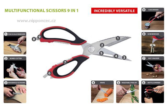 Multifunkční nůžky, 9 speciálních funkcí, odnímatelné čepele.