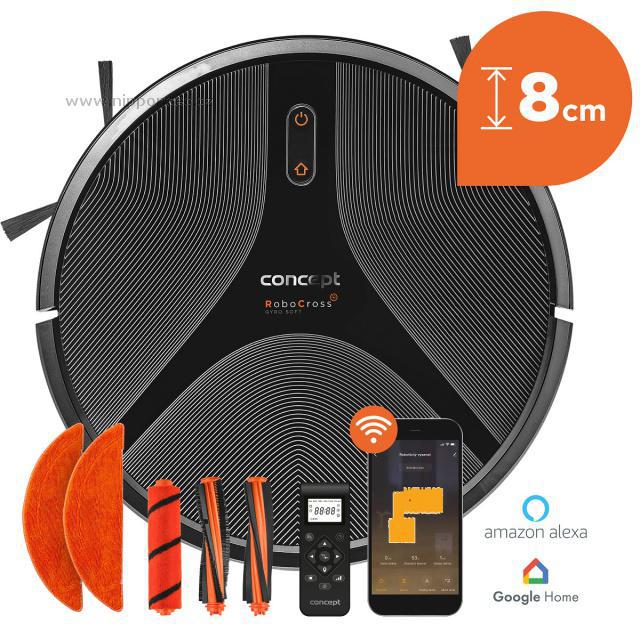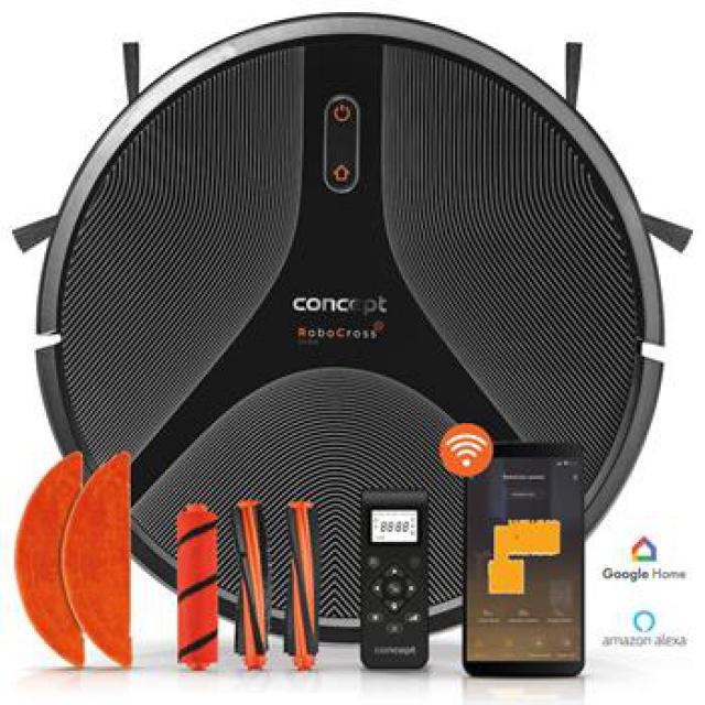 • Ovládání: Robota je možné ovládat přes aplikaci Concept Home, která je v češtině a zdarma dostupná pro iOS a Android. Pomocí aplikace můžete naplánovat úklid kdykoliv a odkudkoliv a zároveň v reálném čase sledovat, kolik toho uklidil a kde se zrovna nachází. I když nebudete zrovna doma, úklid domácnosti budete mít neustále pod kontrolou. Přes domácího asistenta Alexu nebo Google Home můžete vysavač ovládat i hlasem. A pokud nejste fanoušci aplikací nebo nemáte chytrý telefon, můžete ho plně ovládat také pomocí dálkového ovladače.