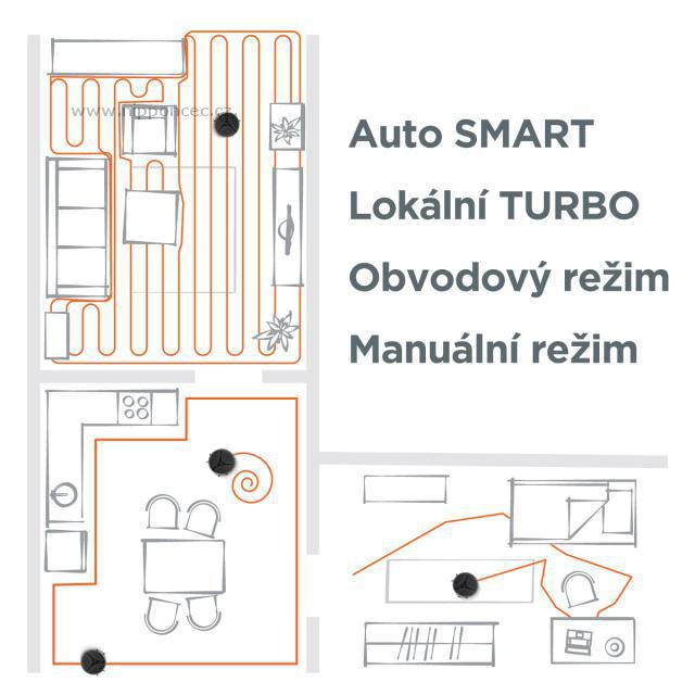 • 4 režimy úklidu (Auto SMART, lokální TURBO, obvodový, manuální)