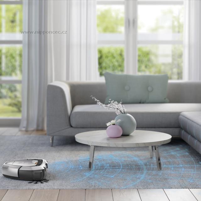 Wi-Fi konektivita vám umožní vysavač ovládat a kontrolovat na dálku přes telefon a nastavit si čas vysávání na dobu, kdy právě nebudete doma nebo kdy se vám to hodí tak, aby vás pracující vysavač nerušil. Přes Wi-Fi také můžete zkontrolovat stav baterie a naplnění sběrné nádoby o objemu až 0,7l, takže máte o vašem chytrém pomocníkovi přehled.