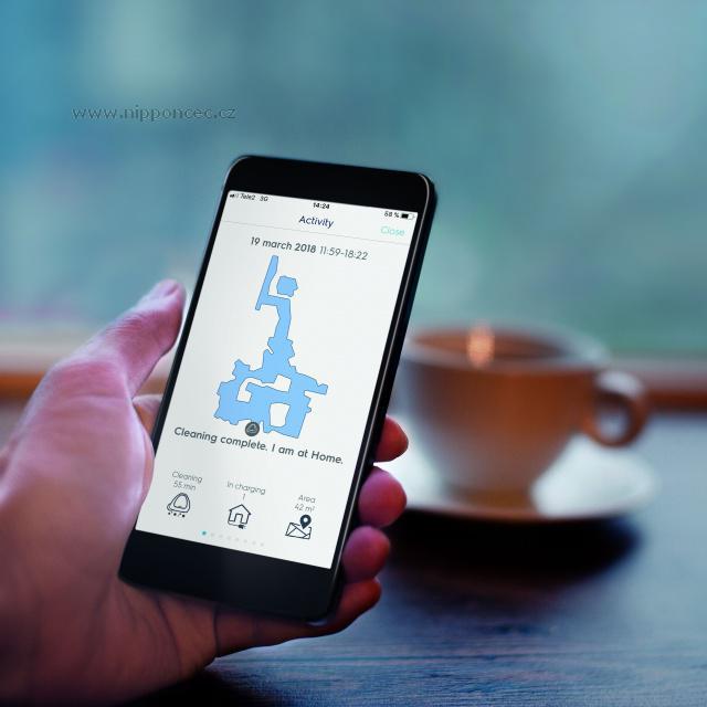 Wi-Fi konektivita vám umožní vysavač ovládat a kontrolovat na dálku přes telefon a nastavit si čas vysávání na dobu, kdy právě nebudete doma nebo kdy se vám to hodí tak, aby vás pracující vysavač nerušil. Přes Wi-Fi také můžete zkontrolovat stav baterie a naplnění sběrné nádoby o objemu až 0,7l, takže máte o vašem chytrém pomocníkovi přehled.