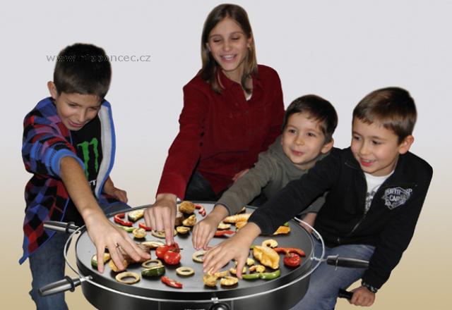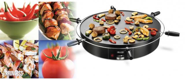 Stolní gril Princess - v jedinečném provedení - otočný v obou směrech - pro nové potěšení ze zdravého grilování pro velké i malé strávníky! Zatočte si na stole o nejlepší kus masa, zeleniny nebo topinky! Další výrobek z edice Table Chef - šéfkuchař na stole - na tyto grily se firma Princess specializuje. Plocha grilu - 40 cm kruh - je velmi hladká, navíc je opatřena kvalitním nepřipékavým povrchem na bázi teflonu.