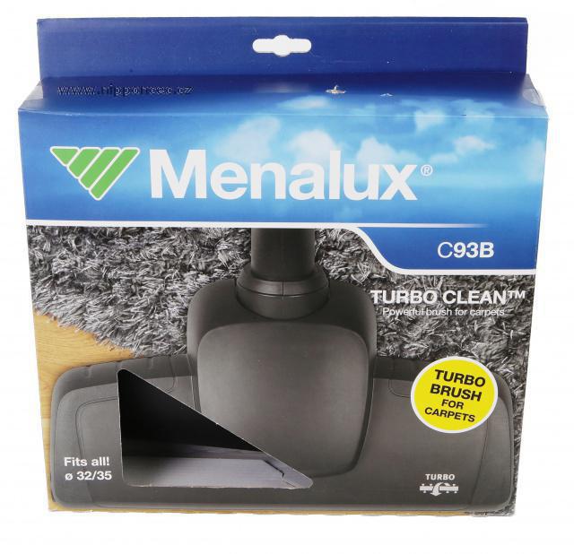 Rotační turbokartáč Menalux C93B Turbo Clean k vysavačům různých značek Univerzální turbo kartáč pro vysavače AEG-ELECTROLUX, Philips a všechny další s připojením příslušenství k vysavači 32 nebo 35 mm. Tento rotační turbokatáč Turbo Clean TM odstraní hluboko usazené nečistoty v koberci, má turbínové řízení pro efektivní hloubkové vyčistění vašich koberců. Turbohubice odstraní hluboko usazené nečistoty z vašeho koberce - ulpělé vlasy, chlupy domácích zvířat, zašlapané drobečky, apod.