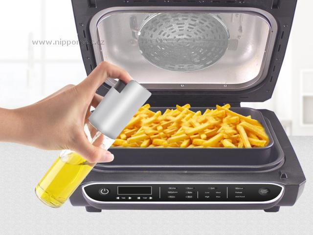 Rozprašovač na olej BEPER C102SPE001 a další ochucovadla je ideálním pomocníkem pro vaření i dochucování pokrmů. Elegantní design z kvalitní nerezové oceli a skla zaručuje nejen moderní vzhled, ale i dlouhou životnost. Skleněná odměrná nádobka o objemu 90 ml umožňuje přesné dávkování oleje, octa, citronové šťávy, sójové omáčky a dalších tekutin, což oceníte při vaření i přípravě salátů. Rozprašovač je ideální pro použití s horkovzdušnými fritézami, kde místo potírání potravin olejem lze využít rovnoměrného nanesení pomocí jemného spreje. Tento univerzální nástroj pro dochucování pokrmů se stane neocenitelným pomocníkem ve vaší kuchyni.
