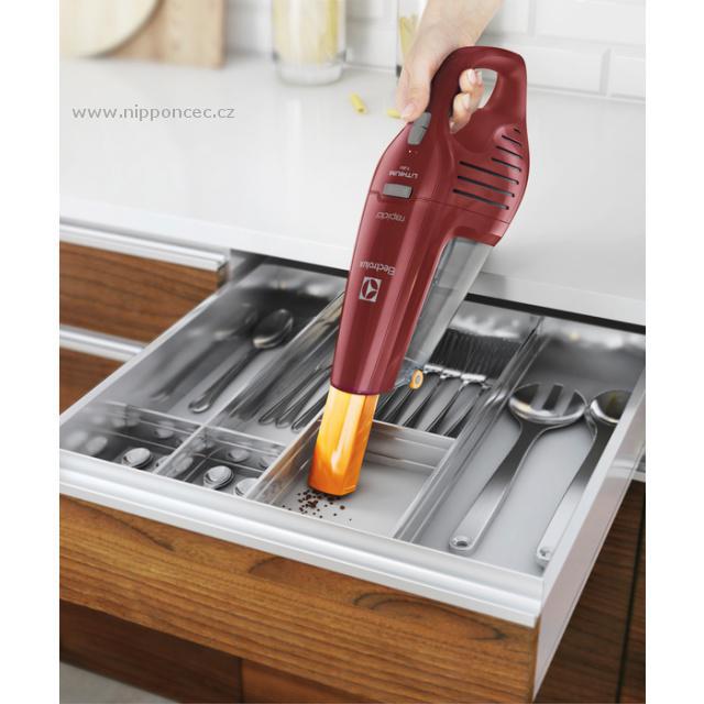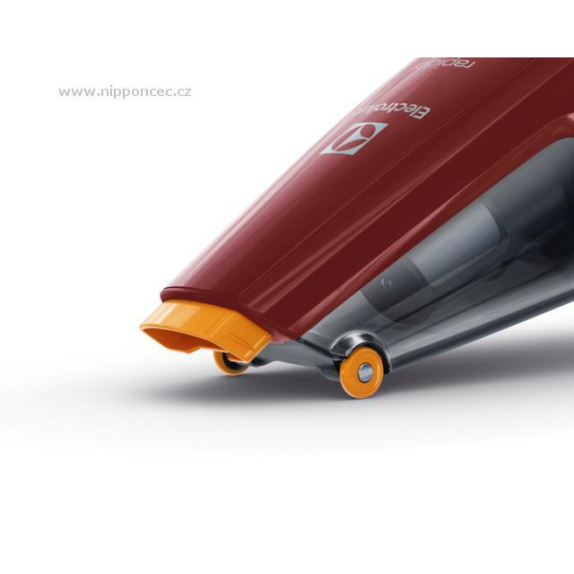 Ruční aku vysavač Electrolux Rapido ZB6106WR je vždy po ruce připraven na rychlý úklid. Díky nové lithiové baterii TurboPower, která zajišťuje konstantně vysoké sání, je nyní výkonnější než kdy dříve. Výdrž vysavače je 10 až 13 minut dle zvoleného režimu vysávání. Kapacita baterie časem nedegraduje a nabije se za pouhé čtyři hodiny. Integrovanou štěrbinovou hubici Easy Reach™ lze vytáhnout během vysávání a tak ji máte vždy po ruce pro vysávání prachu i z těžko dostupných míst. Nádobu na prach o objemu 0,5 l lze vyprázdnit manuálně nebo hygienicky za použití hadice vašeho hlavního vysavače. Kolečka Soft Steer™ usnadňují vysávání a chrání choulostivé povrchy.