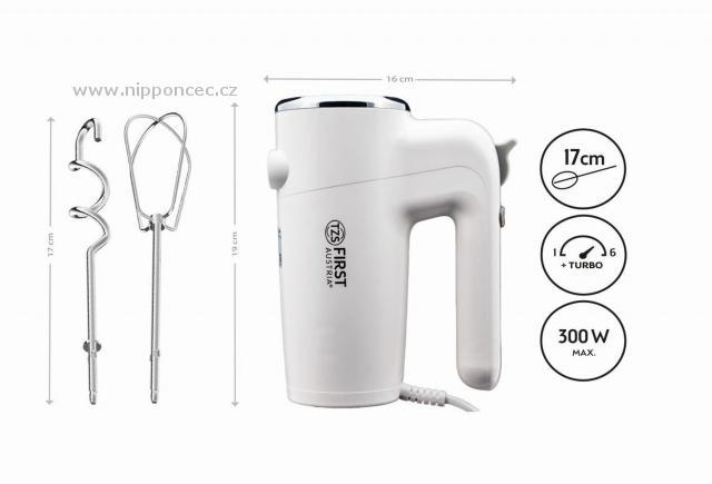 Ruční šlehač First Austria FA-5263-2 v elegantním designu je všestranným pomocníkem do kuchyně. Perfektní ke šlehání a hnětení. Šestistupňová regulace výkonu a tlačítko turbo pro okamžité zvýšení výkonu. V balení ke šlehači naleznete šlehací metly a hnětací háky z nerezové oceli.