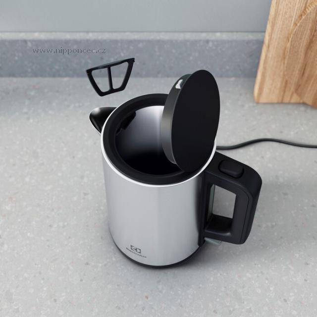 S rychlovarnou nerezovou konvicí Electrolux E4K1-4ST z řady Create 4 se snadno manipuluje díky praktickému otevírání víka konvice jednou rukou. S extra velkým objemem 1,7 litru připravíte veškerou vodu, kterou potřebujete na zalití plné konvice čaje nebo těstovin. Filtr vodního kamene zabraňuje proniknutí nečistot ve vodě do šálku, aby vaše horké nápoje chutnaly vždy co nejlépe. Konvice je navíc vybavena základnou o 360º, takže umístění konvice je snadné, ať jste levák nebo pravák.