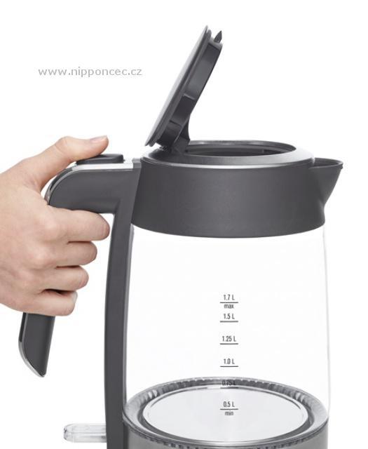 Skleněná rychlovarná konvice EEWA5310 je vyroben z termoskla SCHOTT, který vydrží až 150 stupňů a který zajišťuje vynikající bezpečnost a trvanlivost. Je snadno manipulovatelná díky praktickému umístění tlačítka na otevírání konvice, které je umístěno v horní části rukojeti. Víčko konvice tak můžete otevřít, když konvici držíte v ruce a snadno ji naplnit vodou. S extra velkým objemem 1,7 litru připravíte veškerou vodu, kterou potřebujete. Konvice je navíc vybavena základnou o 360º, takže umístění konvice je snadné, ať jste levák nebo pravák a díky vyjímatelnému filtru na vodní kámen se konvice snadno čistí. Konvice je dále opatřena ochranou proti přehřátí, takže se konvice vypne, jakmile dosáhne bodu varu, nebo se nespustí, pokud není vodou naplněna.