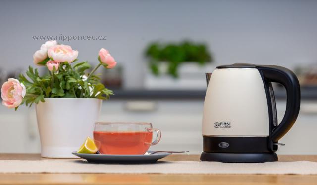 Rychlovarná konvice First Austria, s nastavitelnou teplotou. Teplotu je možno nastavit v na 40/70/90/100 °C, tudíž je vhodná pro milovníky čaje. Konvice je skleněná, s odměrkou, perfektního designu s černými doplňky a nerezovými akcenty. Konvička je vhodná pro leváky i praváky, 360° otočná. Je vybavena vnitřním osvětlením, skrytou topnou spirálou, filtrem v hubici a pojistkou proti přehřátí. Disponuje příkonem 1850 - 2200W.