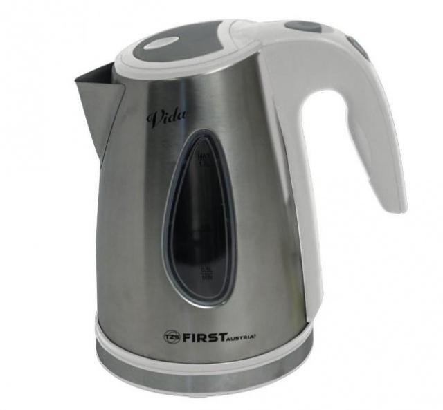 Rychlovarná konvice First Austria FA 5411-3 v kombinaci nerezové oceli a bílého plastu. Kapacita konvice je 1,7l, je bezšňůrová na 360 st. otočném podstavci, vhodná pro leváky i praváky. Konvice má automatické vypnutí, pojistku proti přehřátí, skrytou spirálu, filtr v hubici, ukazatel hladiny vody, vysoký výkon 2200W. Navíc je rychlovarná konvice vybavena vnitřním osvětlením. Perfektně vybavený přístroj za příznivou cenu.