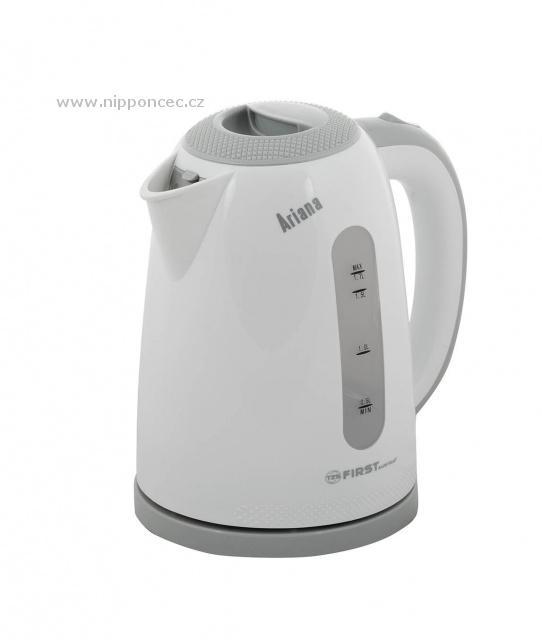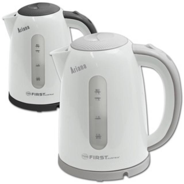 Rychlovarná konvice First Austria FA 5427-2 v kombinaci šedé a bílé barvy. Kapacita konvice je 1,7l, je bezšňůrová na 360 st. otočném podstavci, vhodná pro leváky i praváky. Konvice First Ariana má automatické vypnutí, pojistku proti přehřátí, skrytou topnou spirálu, ukazatel hladiny vody, vysoký výkon 1850 - 2200W.