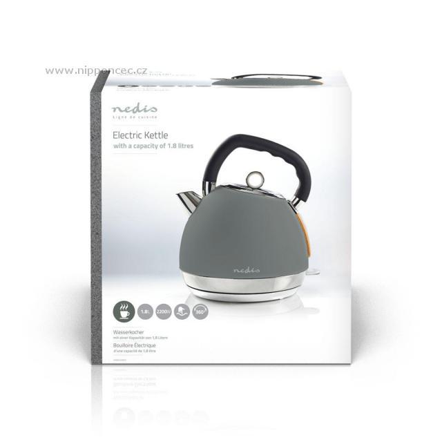 Rychlovarná konvice Nedis v šedém provedení. Díky otočné základně se s konvicí skvěle manipuluje. S extra velkým objemem 1,8 litru připravíte veškerou vodu, kterou potřebujete na zalití kávy, čaje, těstovin nebo instantních nudlí. Konvice je navíc vybavena základnou o 360º. Obsahuje skryté topné těleso s vyjímatelným filtrem, díky kterému voda rychle dosahuje varu a zabraňuje usazování vodního kamene.