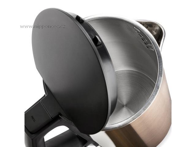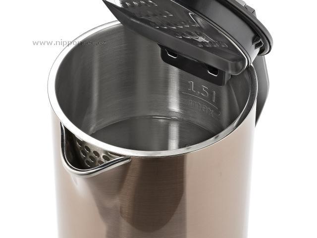 Nerezová konvice v luxusním provedení "Copper", s objemem 1,5 litru, 360 stupňovou rotací pro praváky i leváky, a s filtrem u hubice konvice. Konvička je vybavena přepínačem ON- zapnuto/OFF - vypnuto a je vyrobena z dvojstěnné nerezové oceli.