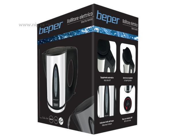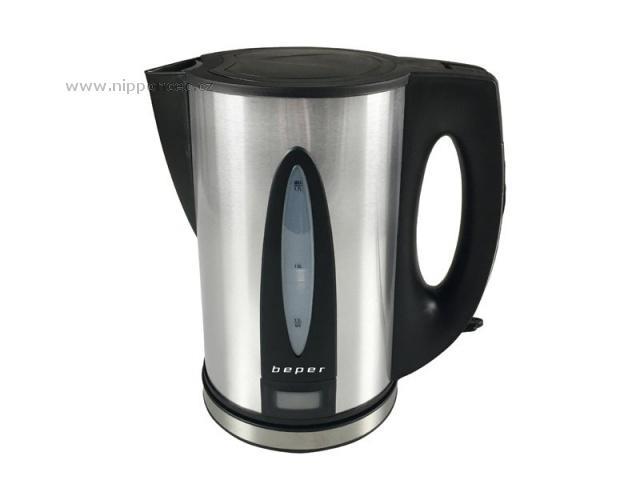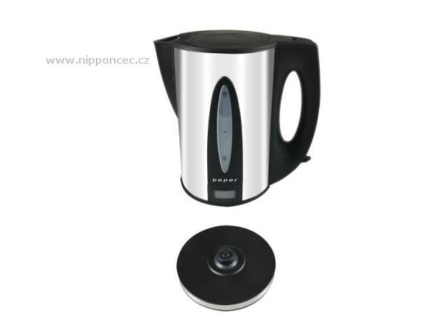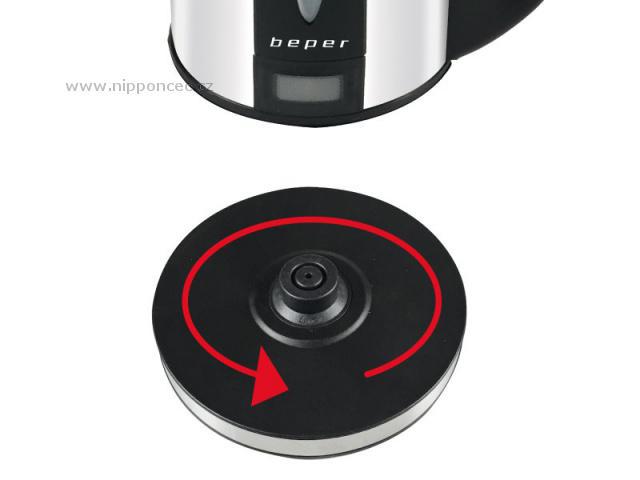 Elegantní rychlovarná konvice BEPER BB101 má vnější tělo z nerezové oceli a objem 1,7 l. Je vybavena odnímatelným a omyvatelným filtrem. Automatické vypnutí při dosažení varu a automatické vypnutí v případě nepřítomnosti vody je samozřejmostí. Dále má tato konvice ukazatel hladiny vody, provozní světlo a kryté topné těleso. Vkládá se na 360° otočnou základnu s praktickým navíječem kabelu, díky tomu je vhodná nejen pro praváky, ale i leváky. Na rukojeti je tlačítko pro otevření víka.